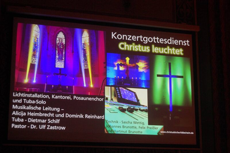 Unsere Gemeinde hatte sich beim lokalen Energieversorger beworben, ein Teil von dessen städtischen Licht-Event sein zu dürfen. Leider wurden wir nicht einmal einer Antwort gewürdigt. Daraufhin haben sich die Mitglieder unseres gemeindlichen Technikteams Gedanken gemacht, was aus eigenen Kräften gestaltet werden könnte. Daraus wuchsen über Epiphanias 3 musikalische Abendgottesdienste mit verschiedensten Lichtszenarien.